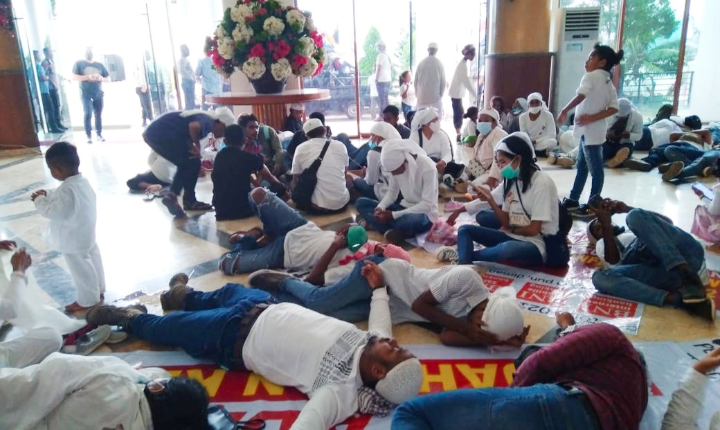 Dalam aksinya, warga meminta perhatian pemerintah daerah, DPRD dan semua pihak untuk menyelesaikan masalah pengungsi Pelauw yang saat ini berada di Negeri Rohomoni.