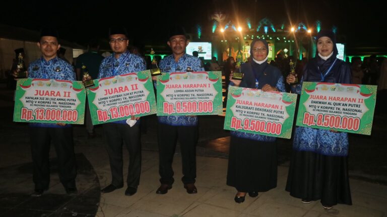 Porostimur.com – Ternate: Musabaqah Tilawatil Quran (MTQ) Korps Pegawai Republik Indonesia (KORPRI) ke-5 yang diselenggarakan sejak tanggal 12 hingga 19 November 2021 di Kendari Sulawesi Tenggara resmi ditutup oleh Gubernur Sulawesi Tenggara H. Alimazi SH atas nama Wakil Presiden RI, Sabtu.