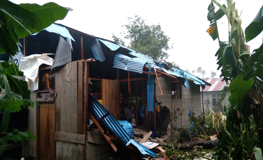 Porostimur.com | Labuha: Akibat hujan deras disetai angin kencang, satu rumah di Desa Gonone Kecamatan Kepulauan Joronga Kabupaten Halmahera Selatan rusak ditimpa pohon beringin.