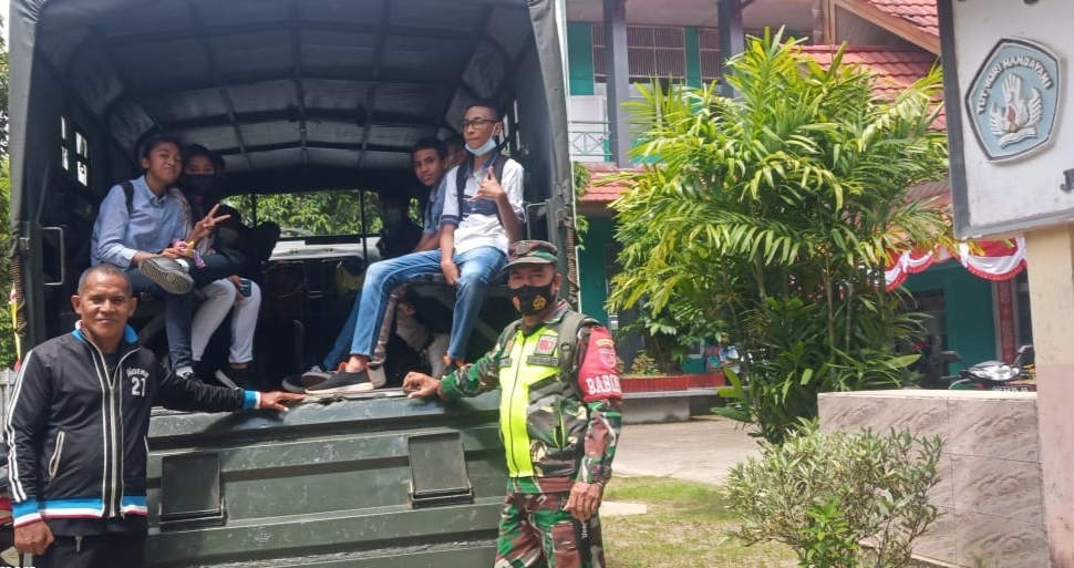 Porostimur.com – Ambon: Babinsa 1504-06/Nusaniwe Kodim 1504/Ambon Serma Robby Tiwal didampingi Wakil Kepala Sekolah Kesiswaan Ny. Ch. Leatemia S.pd memberikan pengarahan kepada siswa/i SMKN 7 Ambon bertempat di lapangan apel SMK Negeri 7 Talake Kel. Wainitu Kec. Nusaniwe kota Ambon. Selasa (5/10/2021).