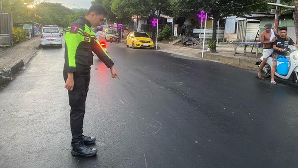 Foto: Polisi melakukan olah TKP usia anggota polisi ditabrak di Ambon. (Dok Satlantas Polres Pulau Ambon)