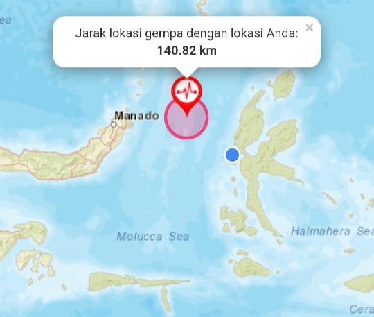 Porostimur.com | Ternate: Badan Meteorologi dan Geofisika (BMKG) mengeluarkan Peringatan Dini Tsunami untuk wilayah: MALUT, SULUT, menyusul Gempa Mag:7.4, 14-Nov-19 23:17:41 WIB, Lok:1.63 LU, 126.40 BT (134 km BaratLaut JAILOLO-MALUT), Kedlmn:10 Km ::BMKG