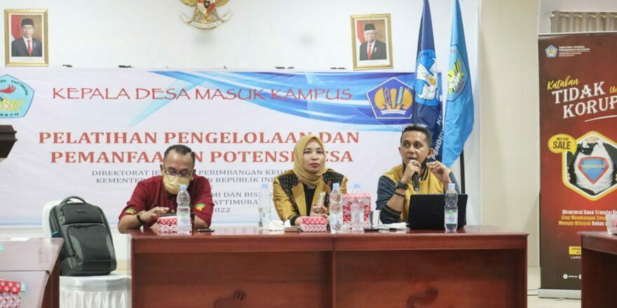 Porostimur.com, Ambon – Direktorat Jenderal Perimbangan Keuangan (DJPK) Kementerian Keuangan Republik Indonesia bekerjasama dengan Fakultas Ekonomi dan Bisnis Universitas Pattimura menggelar Pelatihan Pengelolaan dan Pemanfaatan Potensi Desa “Kepala Desa Masuk Kampus” berlangsung di ruang rapat senat lantai 4 Universitas Pattimura, Kamis, (14/7/2022).