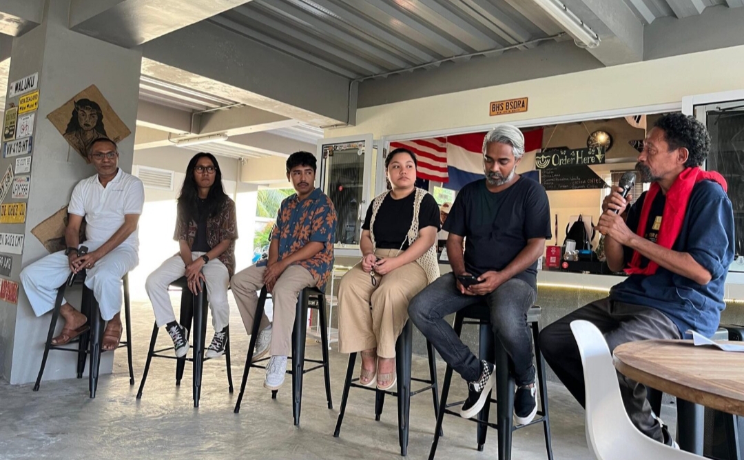 Trio “Eko and The Rua” itu meluncurkan video musik perdana bertajuk “Mantan Toxic” di Kafe Bahasa Basudara, Ambon, Selasa (13/5/2025).