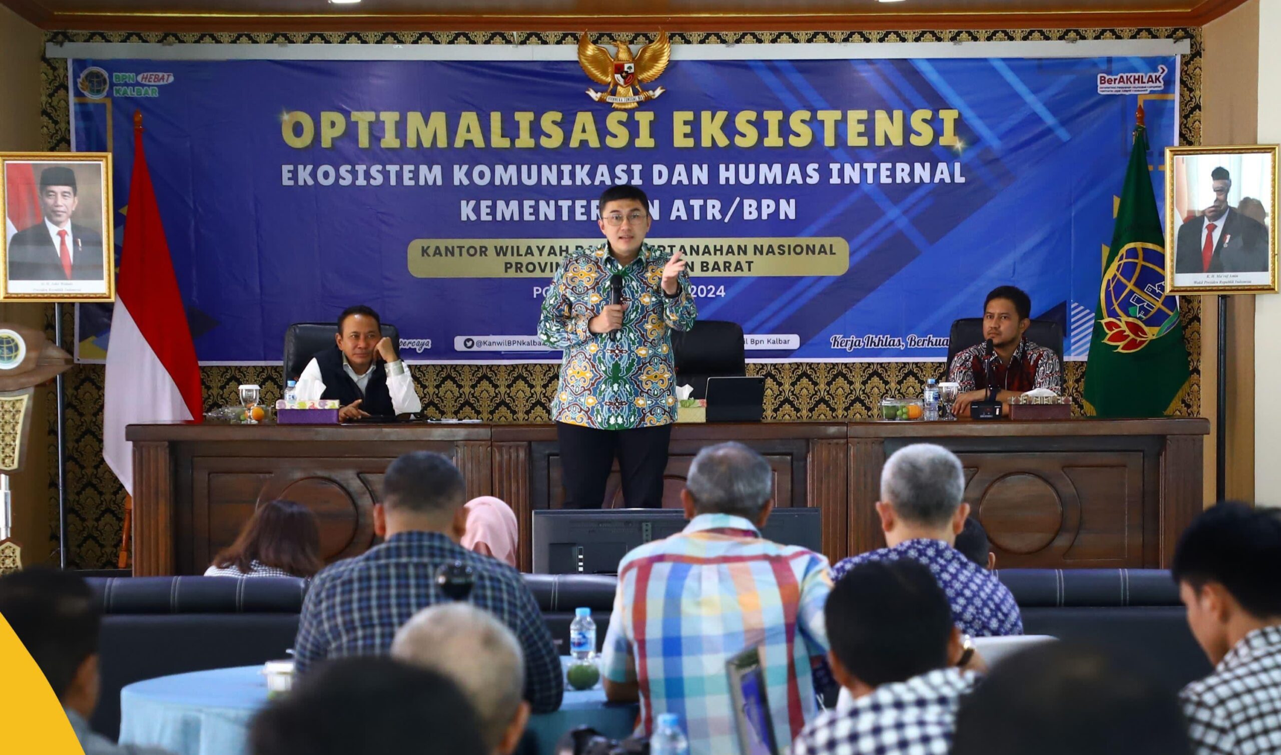 Porostimur.com, Pontianak – Kementerian Agraria dan Tata Ruang/Badan Pertanahan Nasional (ATR/BPN) melalui Biro Hubungan Masyarakat (Humas) melakukan evaluasi program Optimalisasi Ekosistem Komunikasi dan Humas Internal Seluruh Indonesia (Eksistensi) kepada Kantor Wilayah (Kanwil) dan Kantor Pertanahan (Kantah) se-Provinsi Kalimantan Barat.