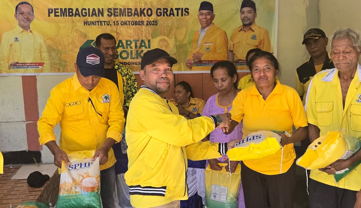 Porostimur.com, Piru – Dalam rangka memperingati Hari Ulang Tahun Partai Golkar ke-61, Dewan Pimpinan Daerah (DPD) II Partai Golkar Kabupaten Seram Bagian Barat (SBB) menggelar kegiatan sosial dengan membagikan paket sembako gratis kepada masyarakat Desa Hunitetu, Kecamatan Inamosol, wilayah pegunungan Kabupaten Seram Bagian Barat.