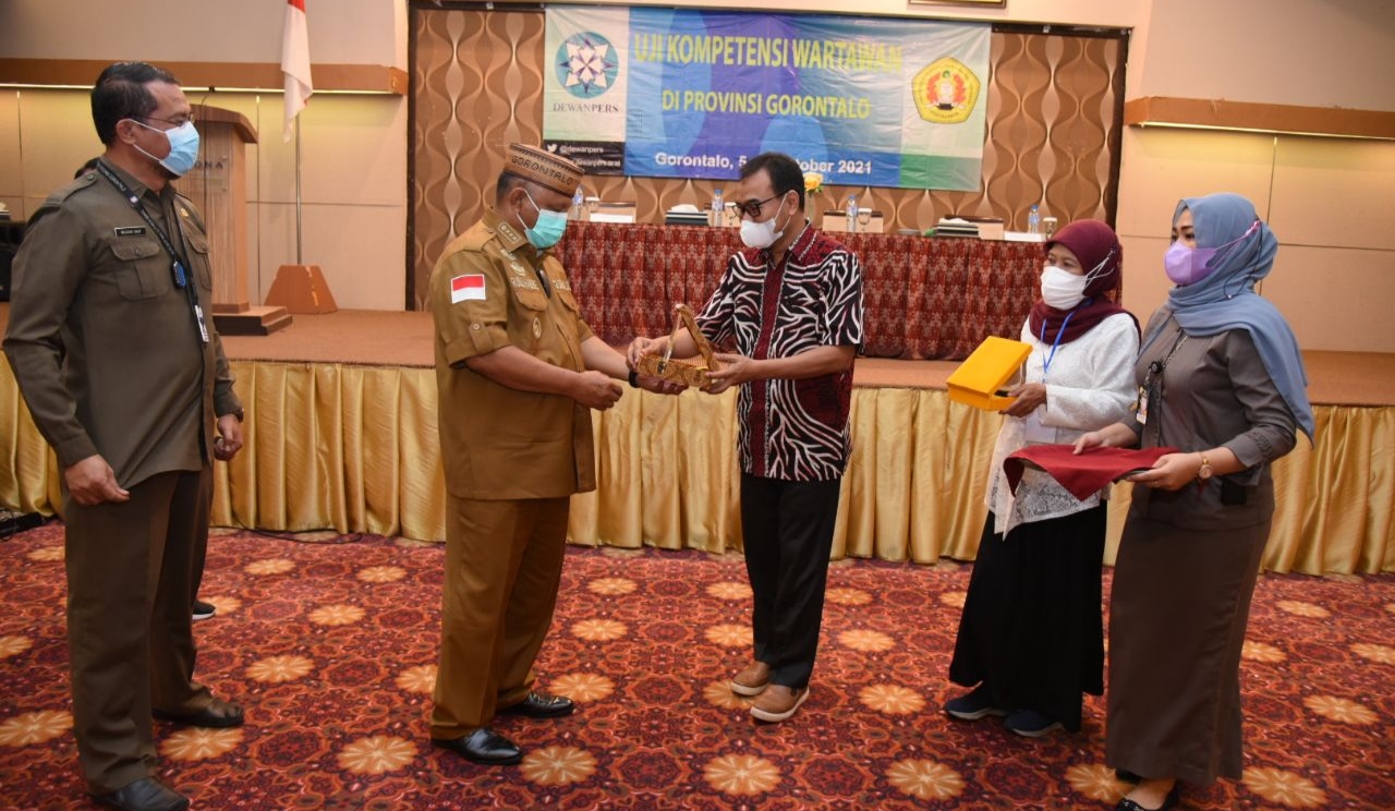 Porostimur.com – Gorontalo: Gubernur Gorontalo Rusli Habibie membuka secara resmi Uji Kompetensi Wartawan (UKW) gratis yang difasilitas Dewan Pers bekerjasama dengan Lembaga Uji Kompetensi Wartawan (LPKW) UPN (Universitas Pembangunan Nasional) ‘Veteran’ Yogyakarta di Hotel Maqna Gorontalo, Selasa (5/10/2021).