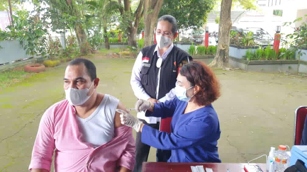 Porostimur.com | Ambon: Anggota DPRD Kota Ambon mengikuti vaksinasi Covid-19, yang dilaksanakan di Halaman Kantor DPRD Kota Ambon pada, Jumat (26/3/2021).