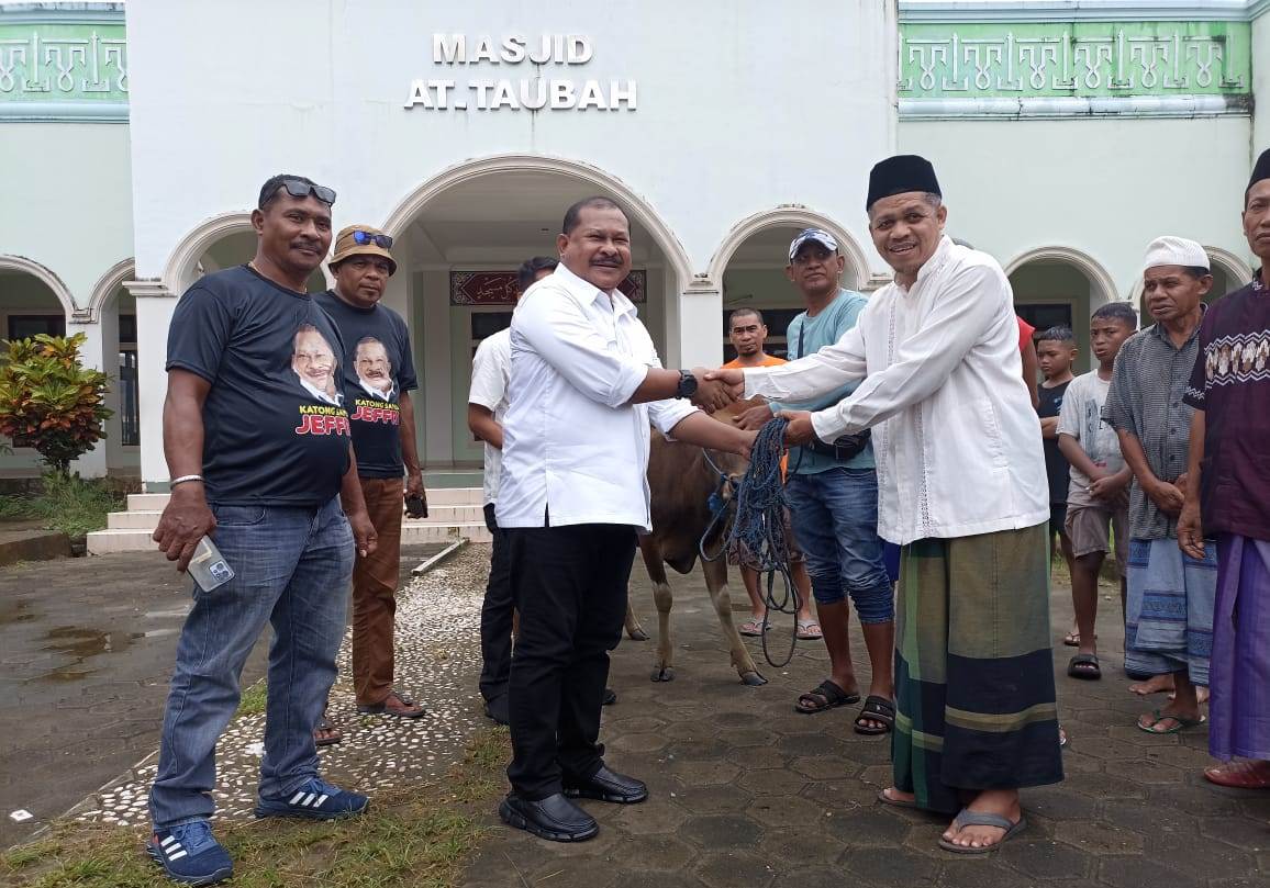 Jefrry mengatakan, penyerahan hewan kurban merupakan komitmen dirinya dan sekaligus bentuk berbagi kebahagiaan dengan umat Muslim.