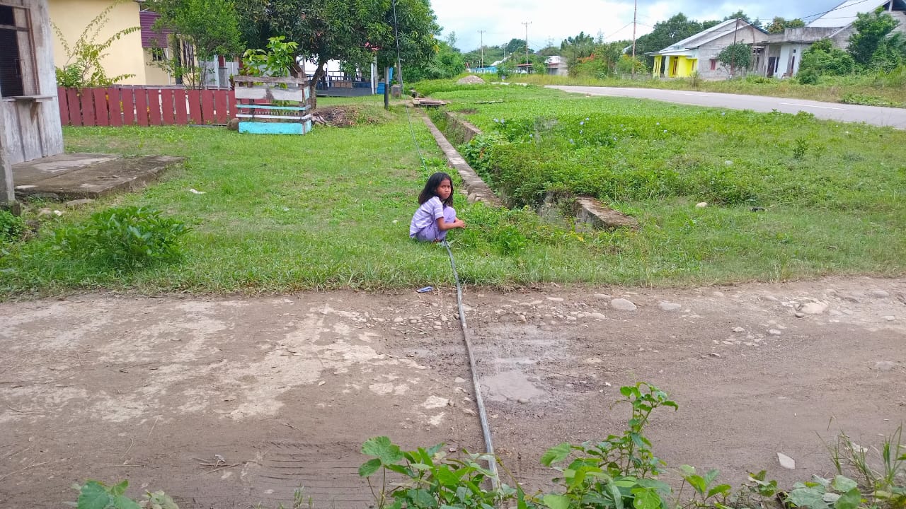 Pantauan Porostimur.com, di lokasi, Senin (19/5/2025) sekitar pukul 10:30 WIT, kabel dengan ukuran 95 mm2 4 core (3x95mm2 dan 1x70mm2) itu, membentang di tangah jalan menuju pemukiman warga setempat.