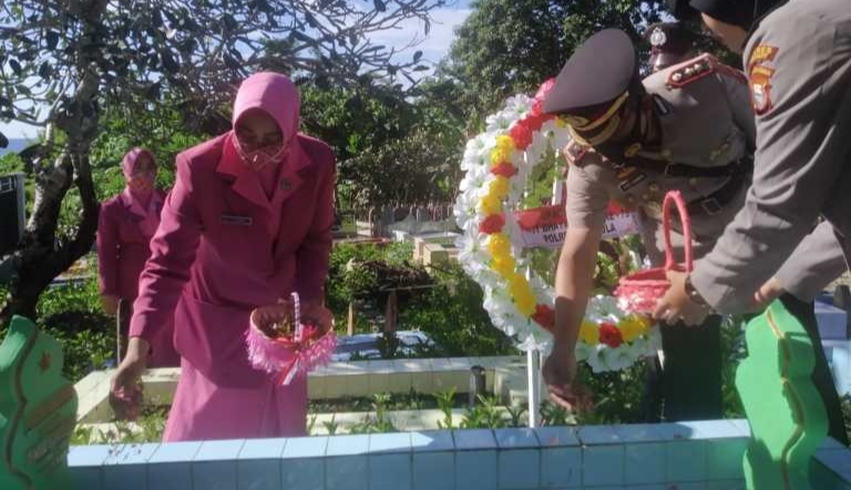 Ziarah Kapolres beserta Pejabata Utama (PJU) Polres Sula, serta anggota Brimob dan Ketua Bhayangkari, dalam rangkan Hari Ulang Tahun (HUT) Bhayangkara Ke-75 Tahun