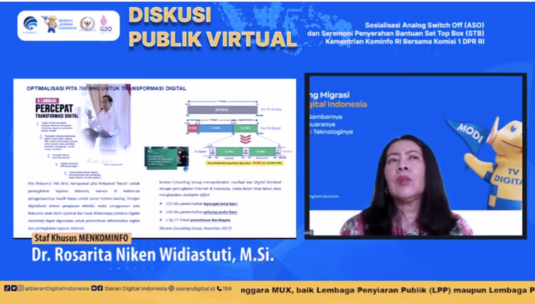 Staf Khusus Menteri Komunikasi dan Informatika Rosarita Niken Widyastuti, dalam Sosialisasi Analog Switch Off (ASO) Kementerian Kominfo RI dan Komisi I DPR RI, Minggu (12/6/2022).