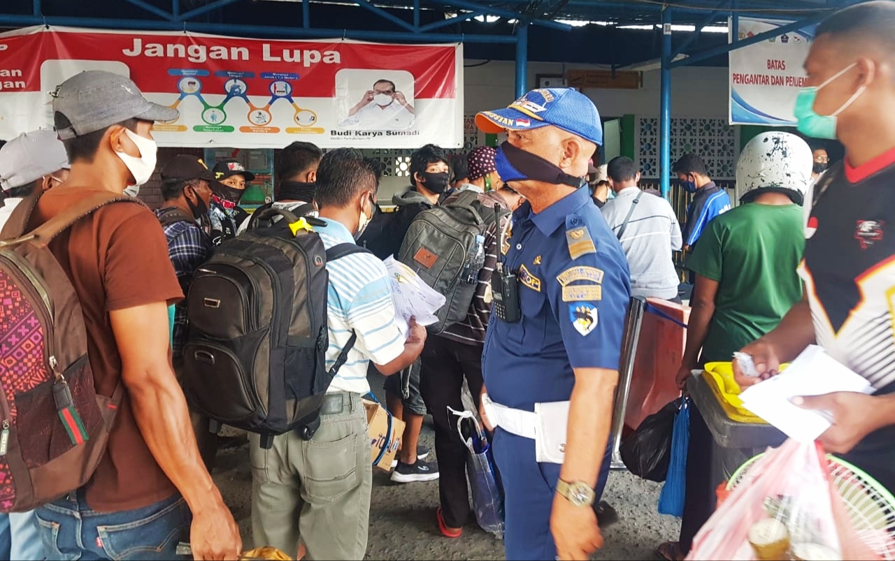 Larangan mudik ini, membuat banyak orang berbondong-bondong untuk melakukan mudik sebelum tanggal yang telah ditetapkan pemerintah. Hal ini terlihat pada aktivitas di Pelabuhan Yos Sudarso Ambon, pada Rabu (28/4/2021).
