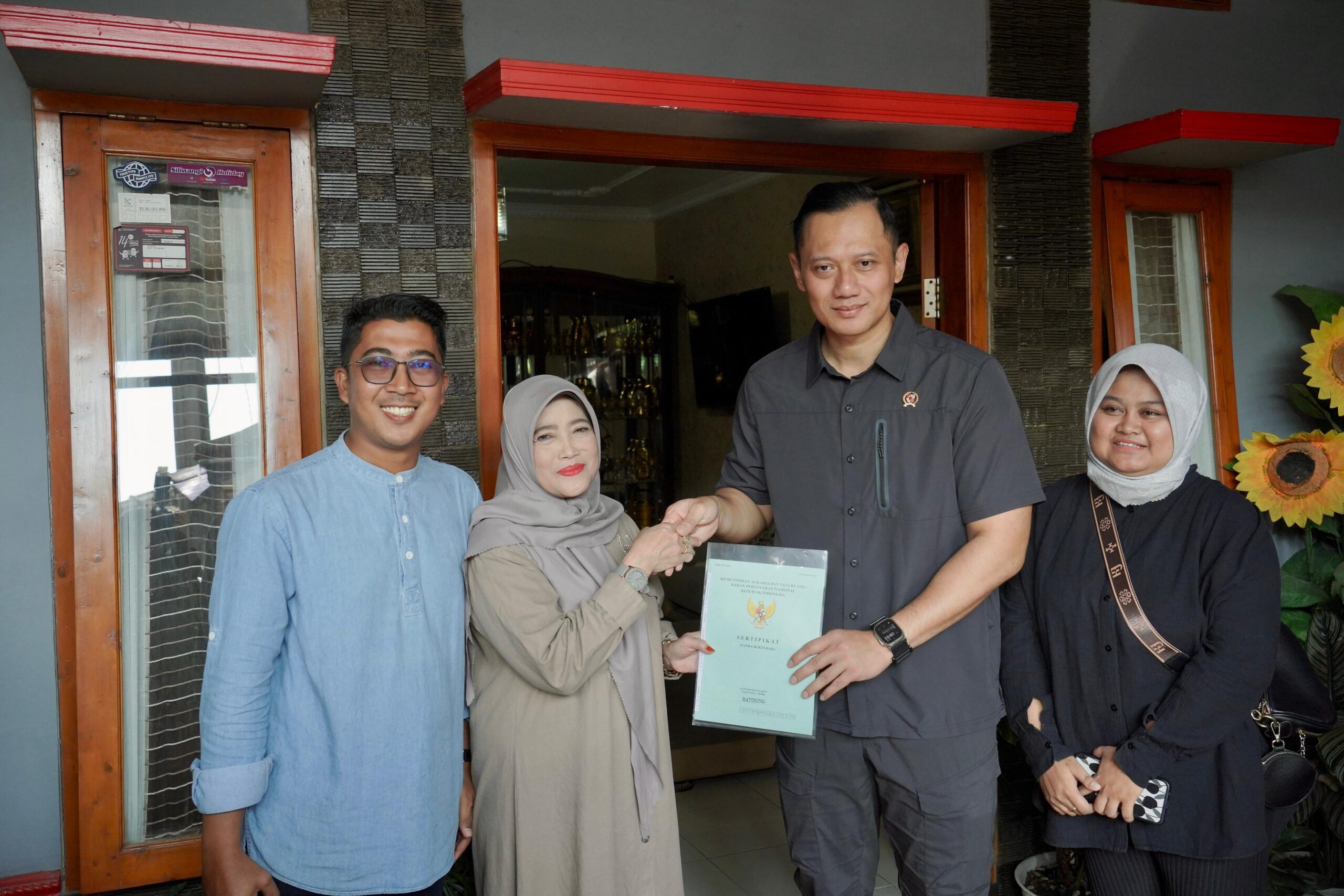 Mumun menerima sertipikat langsung di depan halaman rumahnya dari Menteri Agraria dan Tata Ruang/Kepala Badan Pertanahan Nasional (ATR/BPN), Agus Harimurti Yudhoyono (AHY) pada Minggu (09/06/2024).