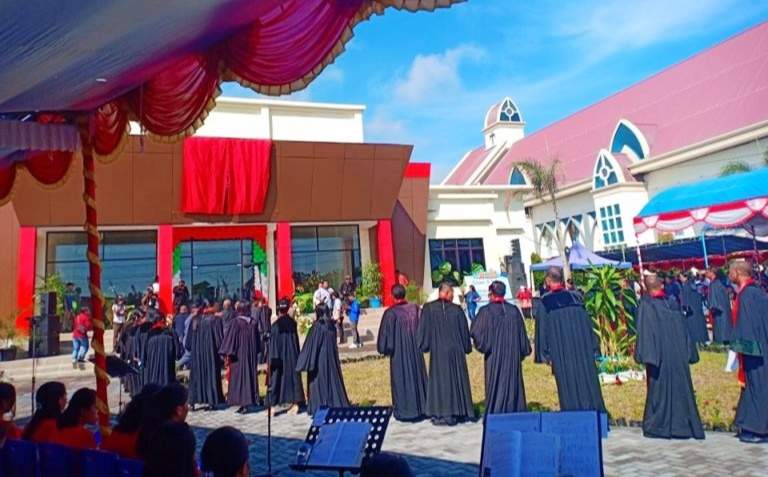 Peresmian yang dihadiri ribuan warga jemaat tersebut, diiringi dendangan merdu lewat alunan musik-musik lokal daerah misalnya, Yangere dan Bambu Tada.