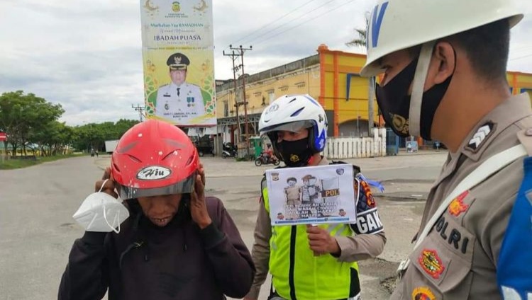 Kasat Lantas Polres Buru, bersama dengan jajarannya memberikan himbauan terkait penerapan protokol kesehatan Covid-19.