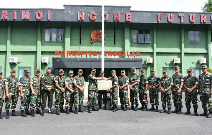 Acara penyerahan bingkisan bertempat di Makorem 152/Babullah Jl.A.M. Kamarudin No. 1 Kelurahan Sangaji, Kecamatan Ternate Utara, Kota Ternate. Kamis (02/01).
