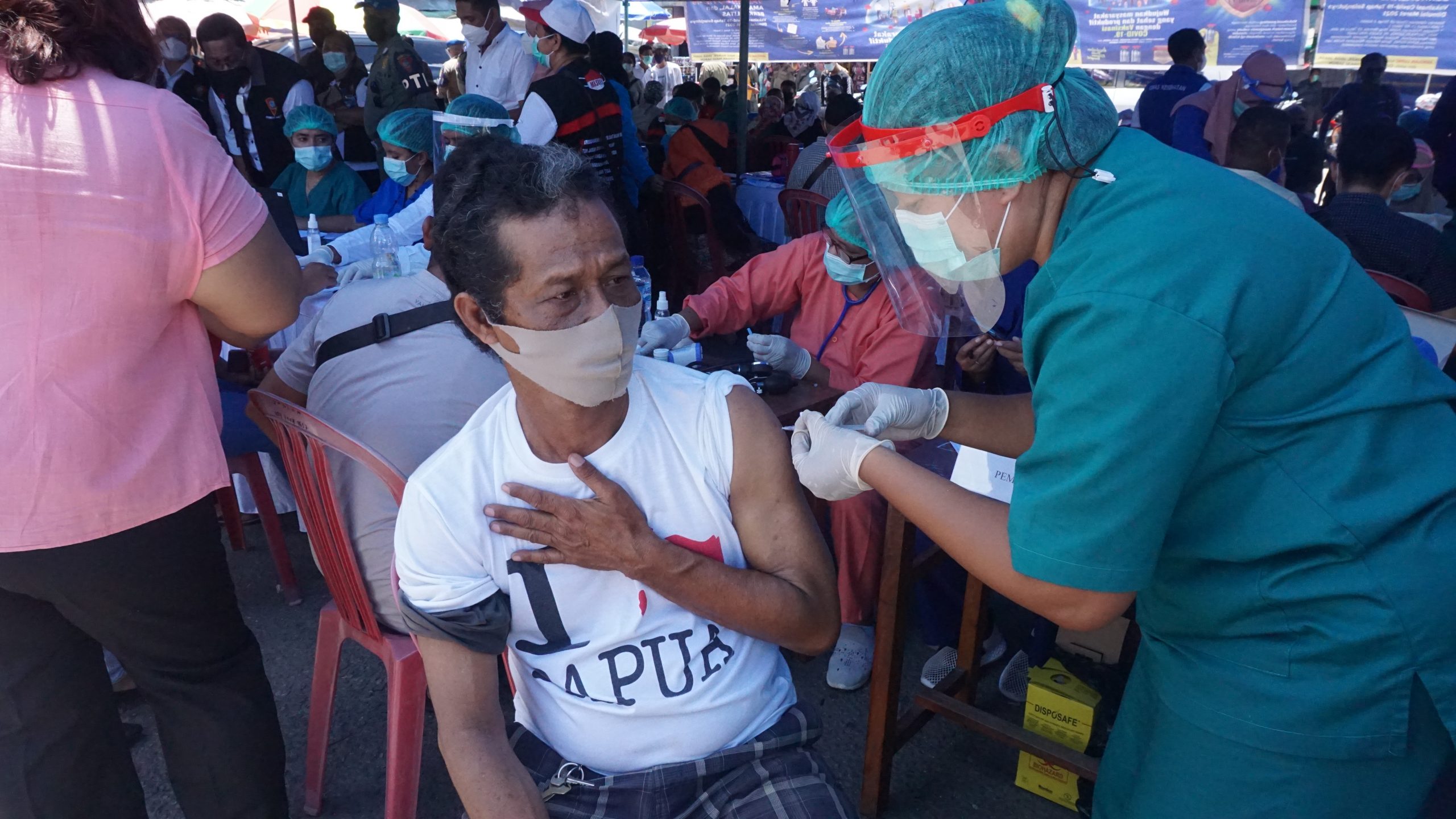 Pedagang Pasar di Kota Ambon Antusias Ikuti Vaksinasi Massal Covid 19