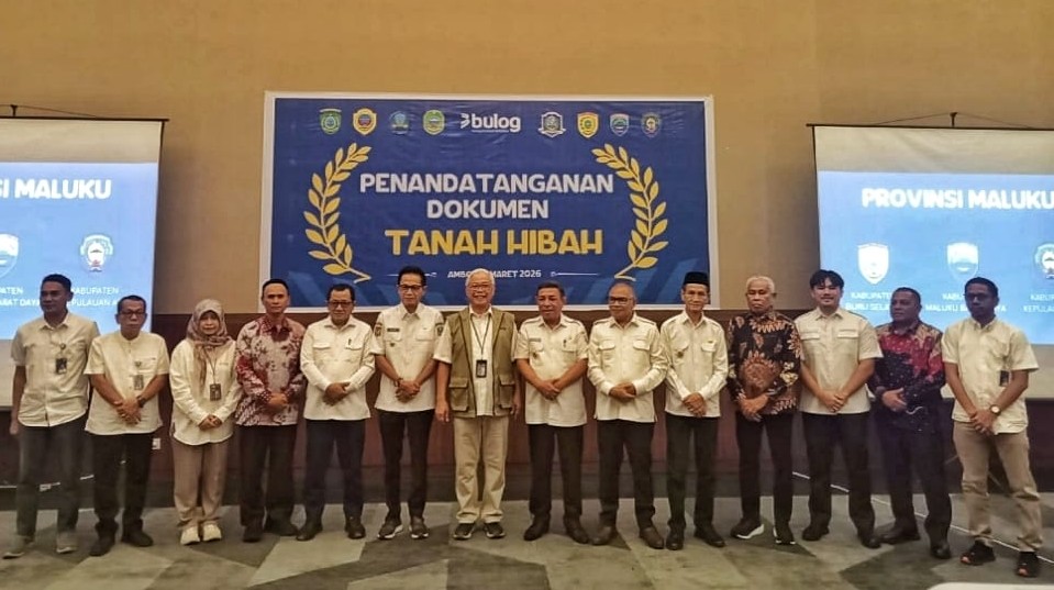 Pemerintah Kabupaten Kepulauan Aru menghibahkan lahan kepada Perum Bulog sebagai bagian dari upaya memperkuat ketahanan pangan di daerah.