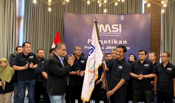 Pelantikan yang dihadiri anggota dan Pengurus JMSI se Jatim dipimpin Ketua Umum JMSI Pusat Teguh Santosa. Hadir pada kesempatan itu, Wakil Gubernur Jatim Emil Elestianto Dardak, Kadis Kominfo Jatim Sherlita Ratna Dewi Agustin, S.Si, M.IP.