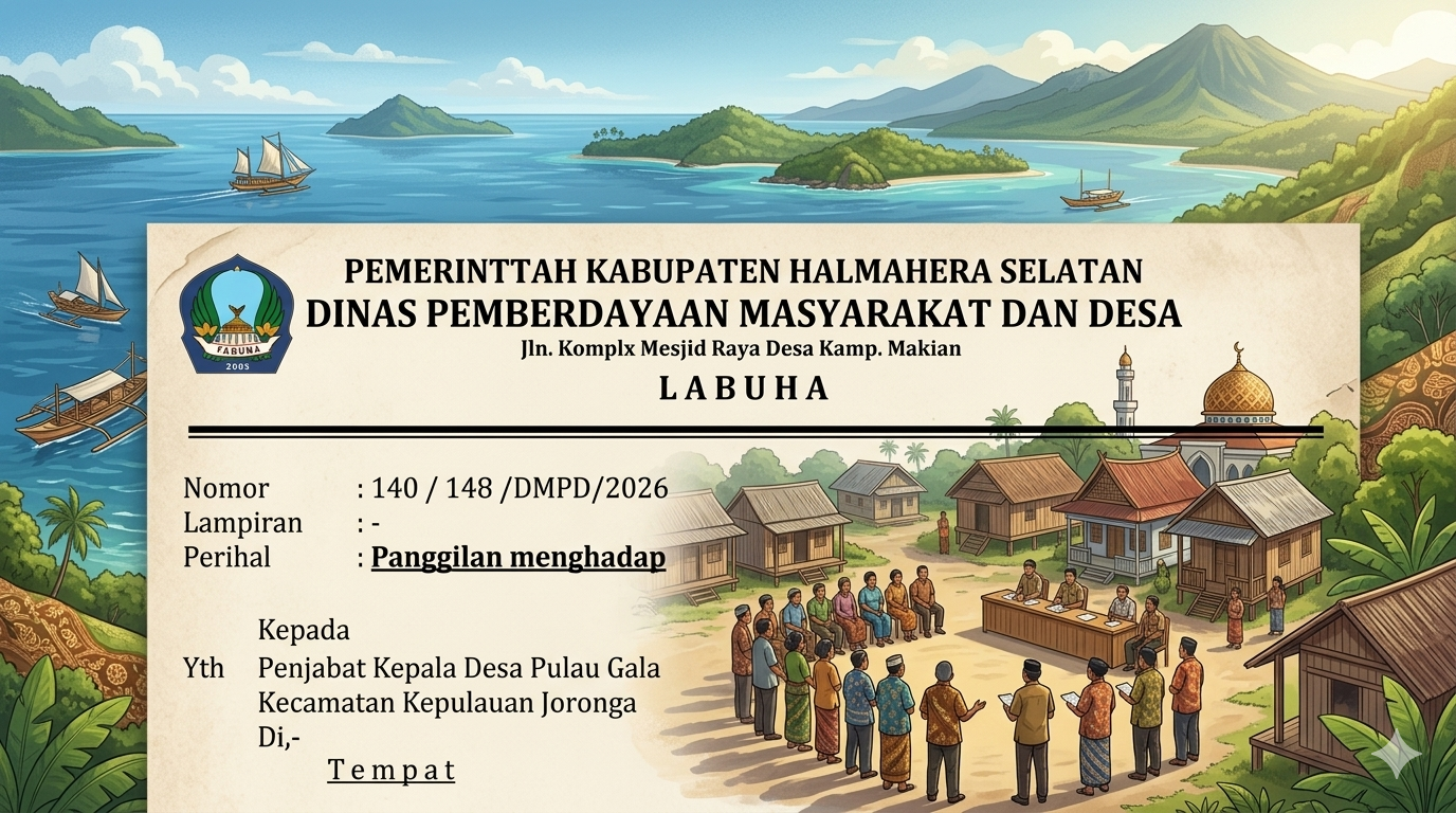 Surat panggilan bernomor 140/148/DPMD/2026 tersebut meminta Pj Kepala Desa Pulau Gala untuk menghadap ke kantor DPMD guna menjelaskan sejumlah persoalan, terutama terkait transparansi pengelolaan dana desa.