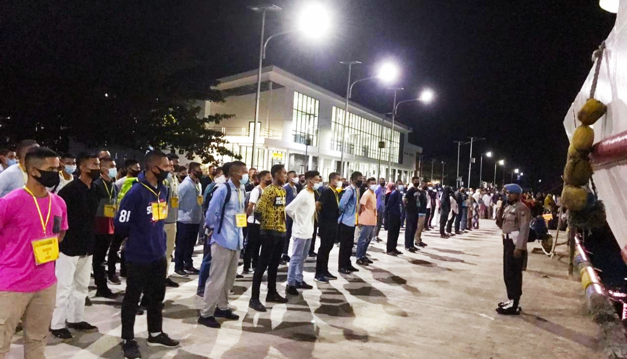 Porostimur.com | Labuha: Panitia Pembantu Penerimaan (Panbanrim) Polri, Kepolisian Resor Halsel berangkatkan ratusan calon siswa (casis) Polri menuju Polda Malut dengan menggunakan angkutan Laut dengan menggunakan Kapal Uki Raya 23 di Pelabuhan Pelni Desa Babang Ahad 18 April, tadi malam.