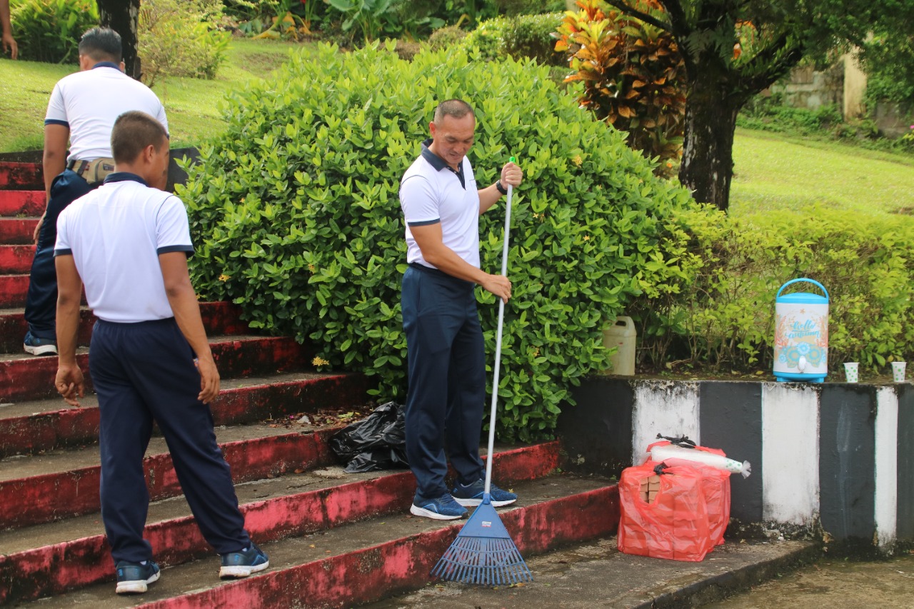 Porostimur.com, Ambon – Guna mewujudkan Kota Ambon bersih, indah dan sehat, Batalyon Marinir Pertahanan Pangkalan (Yonmarhanlan) IX Ambon terus melaksanakan kegiatan karya bakti pembersihan lingkungan. Kali ini pembersihan menyasar ke Patung Pahlawan Martha Christina Tiahahu, di Karang Panjang, Kota Ambon, Maluku, Sabtu (15/10/2022).