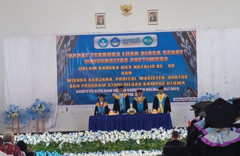 Porostimur.com, Tiakur – Kegiatan Rapat Terbuka Luar Biasa Senat dalam rangka Wisuda Sarjana, Profesi, Magister, Doktor dan Program Studi di luar Kampus Utama, Kabupaten Maluku Barat Daya, digelar di Gedung serbaguna Tiakur, Rabu, (3/5/2023).