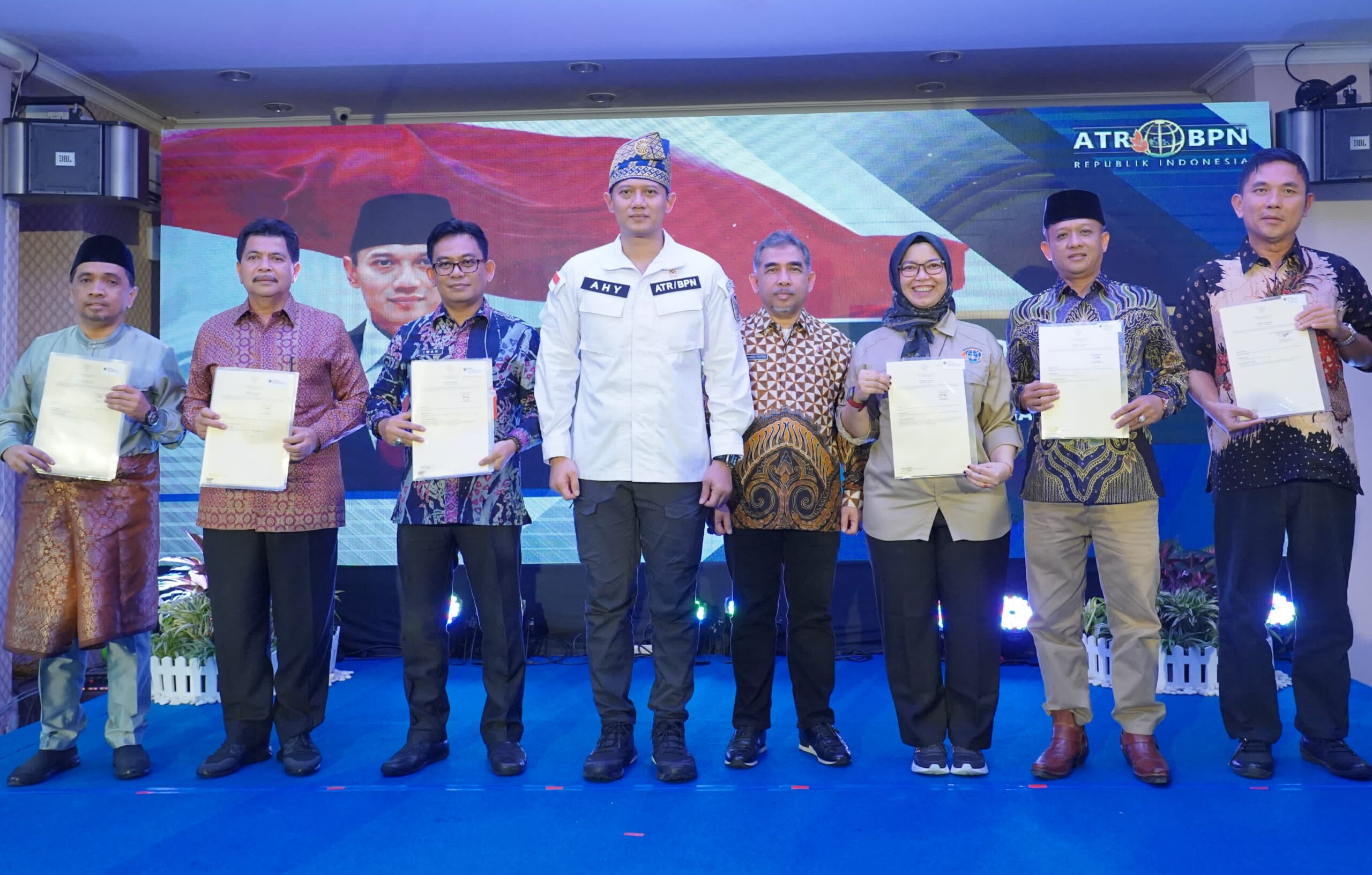 Adapun sertipikat yang diserahkan Menteri AHY kali ini terdiri dari 5 sertipikat Barang Milik Daerah (BMD), 5 sertipikat Barang Milik Negara (BMN), dan 2 sertipikat tanah milik perorangan.
