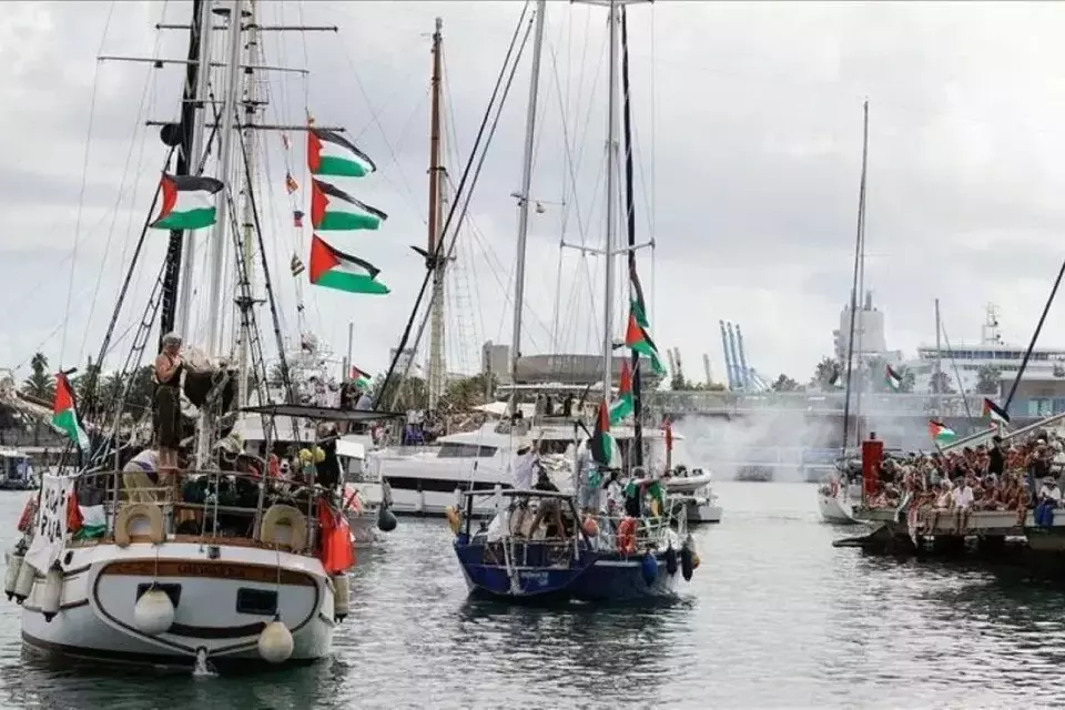 Sejumlah kapal yang berpartisipai dalam Global Sumud Flotilla untuk menyalurkan bantuan kemanusiaan ke Gaza. (Antara)