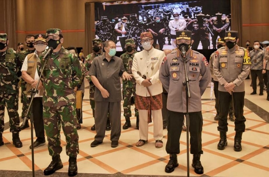 “TNI-Polri telah melakukan langkah-langkah dalam mengendalikan laju Covid-19 melalui pandampingan dan penguatan personel dalam rangka pendisiplinan protokol kesehatan,” ujar mantan Kapolda Banten itu.