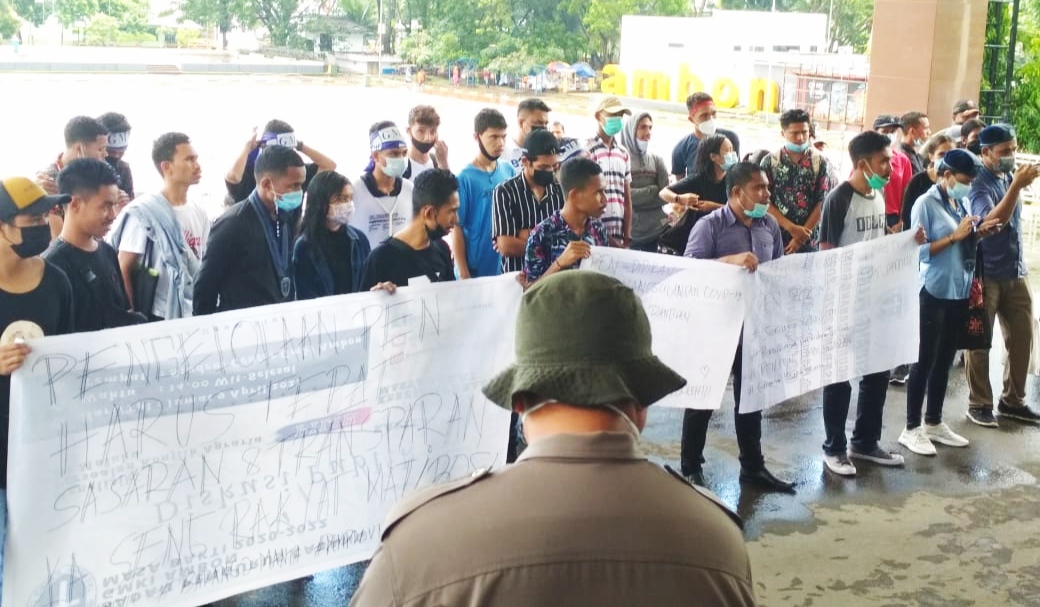 “Bahwa pengunaan dana PEN itu dilimpahkan kepada pemberdayaan masyarakat. Untuk kemudian mendongkrak perekonomian nasional itu sendiri, ” ujar korlap, Ongki Leslessy kepada wartawan porostimur.com di Kantor Gubernur Maluku.
