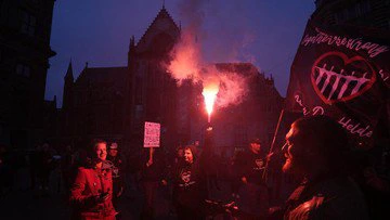 Pada hari yang sama, ribuan pengunjuk rasa menghadiri pawai yang sebagian besar damai di ibu kota Amsterdam, Belanda.